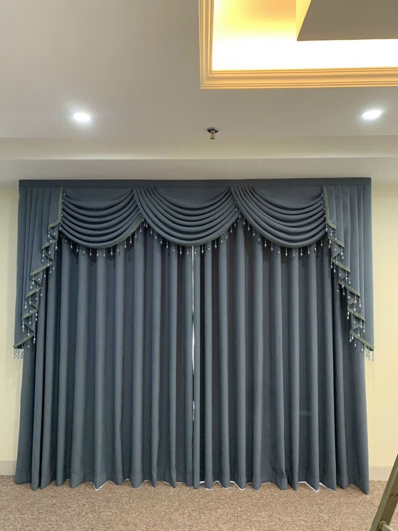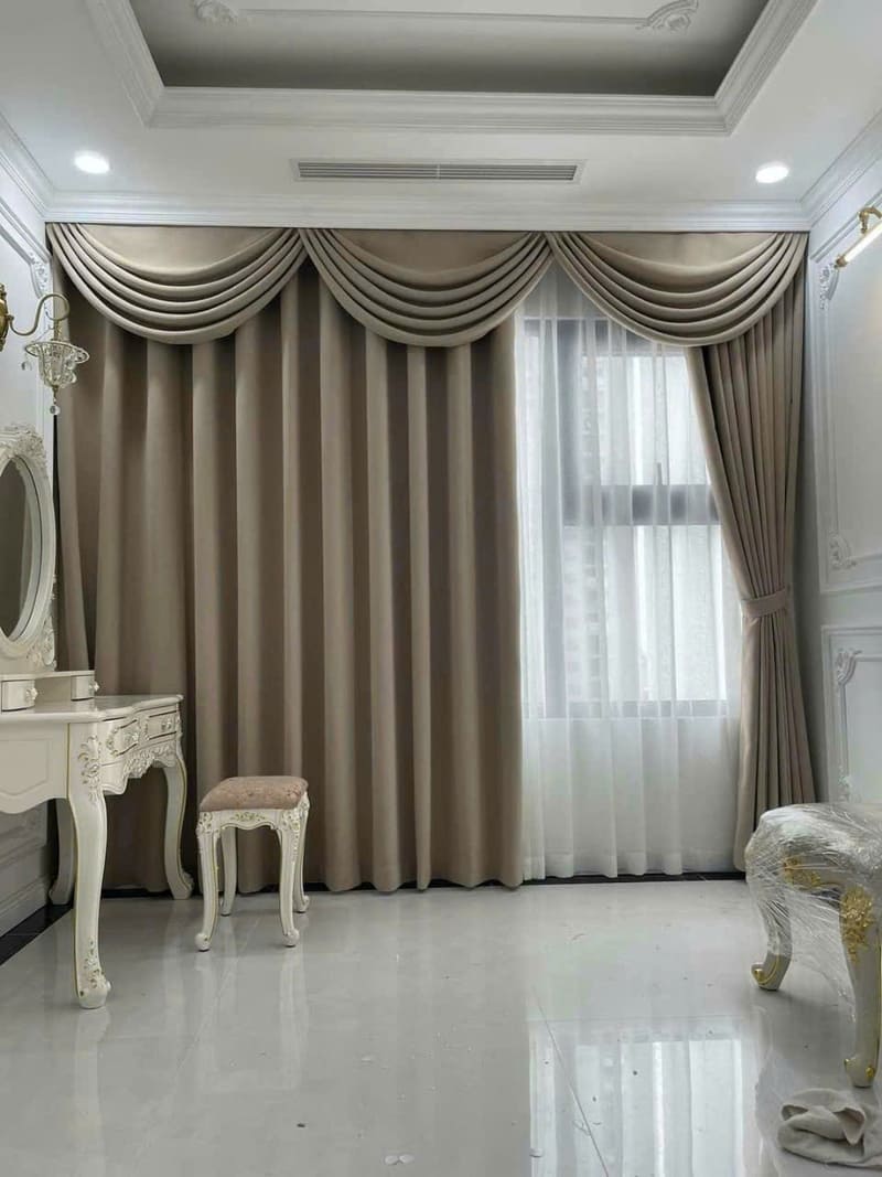 Màu Sắc và Hoa Văn: Chọn màu sắc và hoa văn của rèm vải sao cho hài hòa với màu sắc tổng thể của căn phòng. Những màu sắc trung tính như trắng, kem, xám thường phù hợp với không gian hiện đại, trong khi các gam màu đậm như đỏ, tím, xanh đậm lại tạo điểm nhấn nổi bật cho phòng khách hoặc phòng ngủ sang trọng.