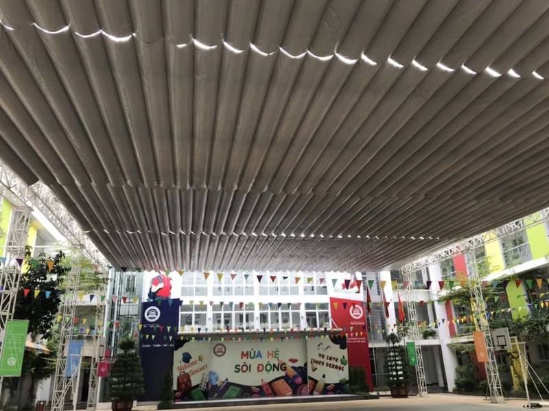 - Tiết kiệm chi phí và thời gian: So với việc xây dựng mái che cố định, việc lắp đặt mái xếp lớp tiết kiệm được nhiều chi phí và thời gian. Hơn nữa, mái xếp có thể dễ dàng tháo lắp khi cần thiết, rất tiện lợi cho các công trình tạm thời.