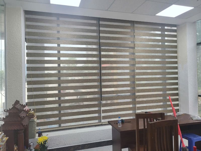 Kiểm soát ánh sáng linh hoạt: Với thiết kế hai lớp vải song song, rèm cầu vồng giúp bạn dễ dàng điều chỉnh độ sáng phù hợp cho không gian làm việc. Bạn có thể chọn hoàn toàn che kín hoặc để ánh sáng tự nhiên lọt vào tùy nhu cầu.
