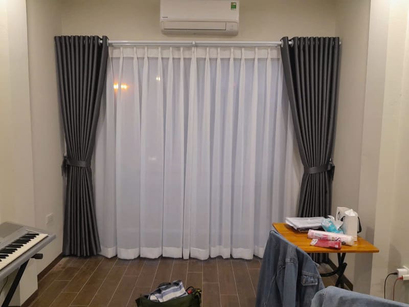 Lớp Vải Dày (Lớp Chắn Sáng): Lớp vải này thường được làm từ vải dày hơn, có khả năng chắn sáng và cản nhiệt tốt. Khi kéo lớp vải này lại, rèm sẽ ngăn chặn gần như toàn bộ ánh sáng từ bên ngoài, tạo ra không gian tối và yên tĩnh, lý tưởng cho việc nghỉ ngơi vào ban đêm hoặc khi cần cản sáng hoàn toàn.